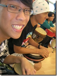 after the workshop we went straight to Studio studio 5 which is jus beside ours to attend another workshop and showcase, Nomad Adventure drum circle.when we enter, we were given a stick and a small “drum” to play with, the whole studio was filled with drum noise, people hitting the drum as hard as they could. well, this was the best part of the day because i enjoy strong rhythm music and bass sound. i’ll let the picture say their words.. XD